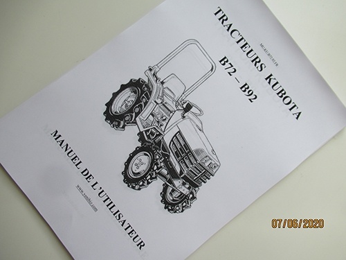 Operator's manual Kubota in French - Kubota : B72, B92